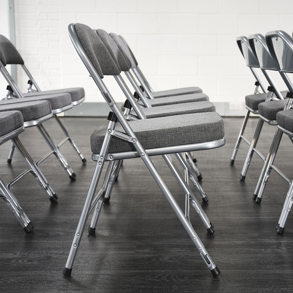 Comfort meets strength in the Comfort Deluxe Folding Chair. Perfect for churches, schools, community centres, offices, and events, this metal folding chair features an extra-deep padded seat and contoured back for long-lasting comfort. Ideal for assemblies, meetings, conferences, and events. Stack, link, and store with ease while providing professional-grade seating that lasts.